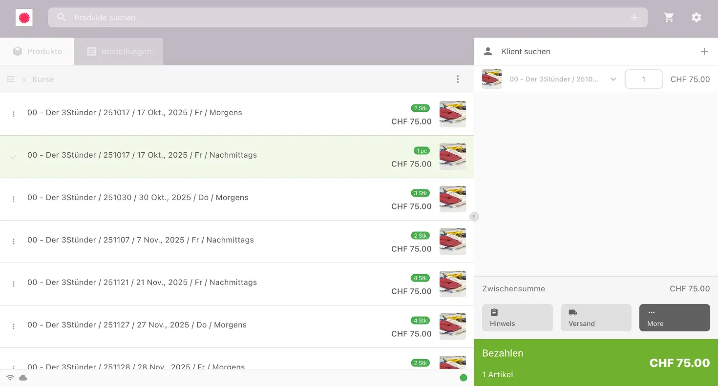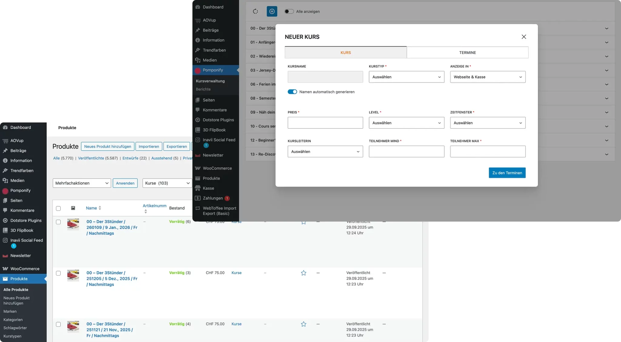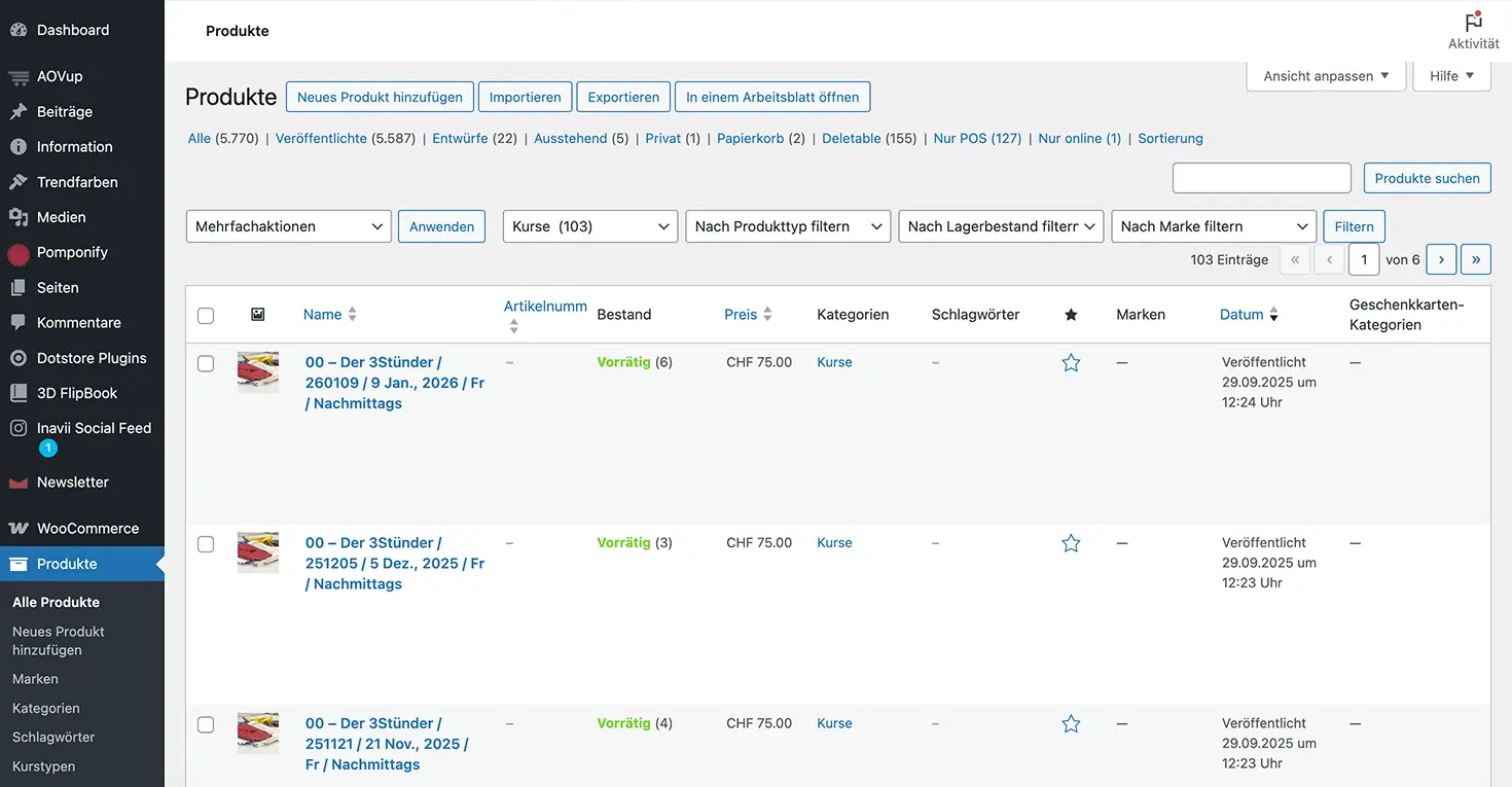 All courses automatically appear in the WooCommerce system – ready for sale via your online shop or point-of-sale (POS) system.