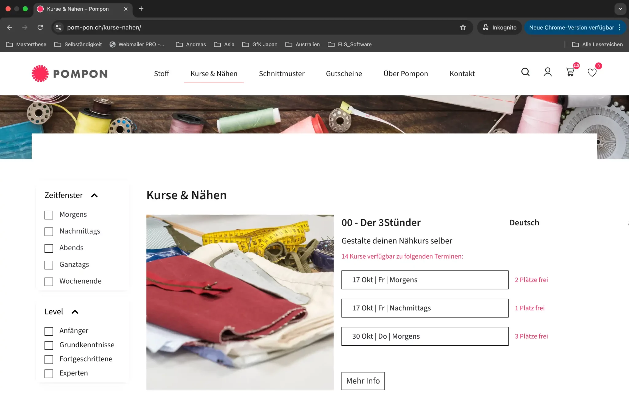 Ein Stoffladen verkauft Stoffe und Schnittmuster – und dazu gleich den passenden Nähkurs.